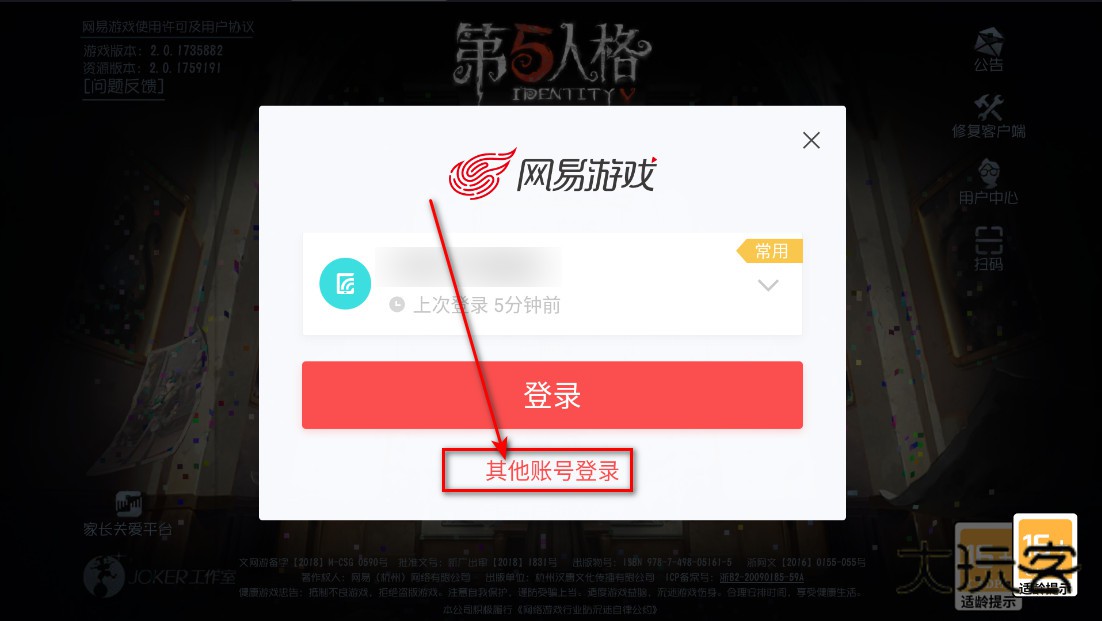 4.此时我们就到了登陆界面,我们不要选择常用的账号,在下方“选择其他账号”登录游戏。