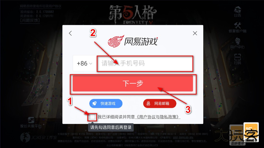 5.先勾选点击同意“用户协议与隐私政策”,再填入自己新的手机号,或者填入新的网易邮箱,最后点击下一步。就能够直接注册创建新号了!