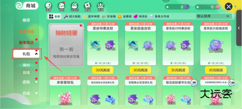 3、选中商城界面里的 “礼包” 选项,可查看对应形象的等级或属性,转移至同类型的其他形象上,完成资源调配。