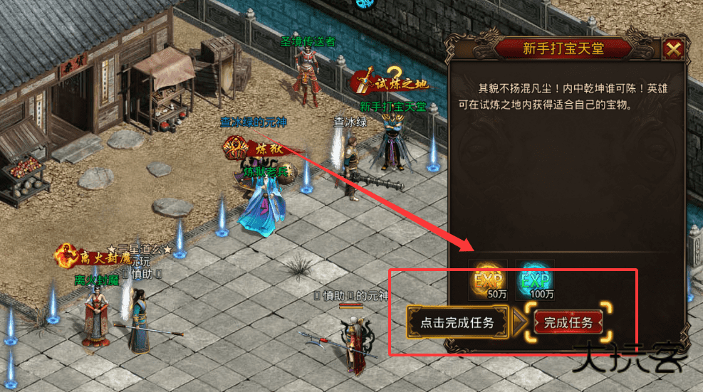 3、在新手打宝天堂中,选择适合你等级的经验任务,点击对应按钮即可轻松完成。