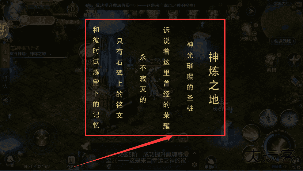 1、先找到地图中标注的“神炼之地”入口,进入后根据界面提示操作,有助于提升你的魔魂等级呢。