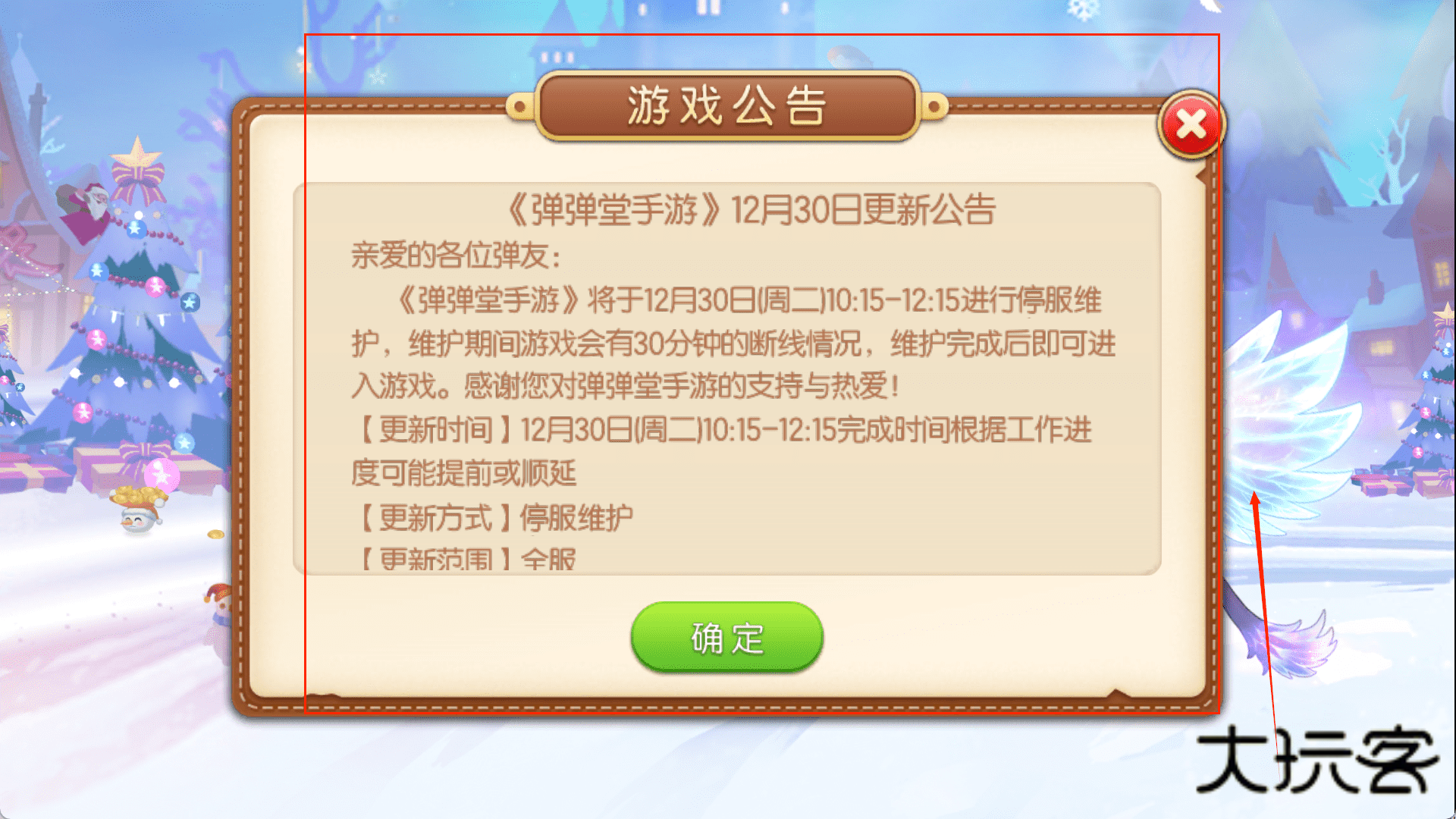 4、登录过程中若看到游戏公告,快速浏览下维护时间。最后,在界面最下方,有一行关于已阅读协议的勾选框,点击打勾,再确认下版本号,这样所有的前置步骤就都完成啦。
