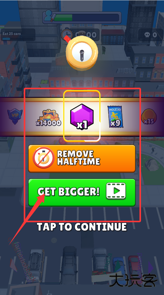 3、关卡中可使用临时增益道具,例如“REMOVE HALF TIME”(减少一半时间)或“GET BIGGER!”(变得更大)。这些效果能帮助更轻松地达成目标或挑战更高分数。