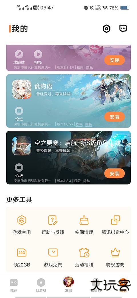5、往下滑,在更多工具中,大家可以快速进入游戏空间。