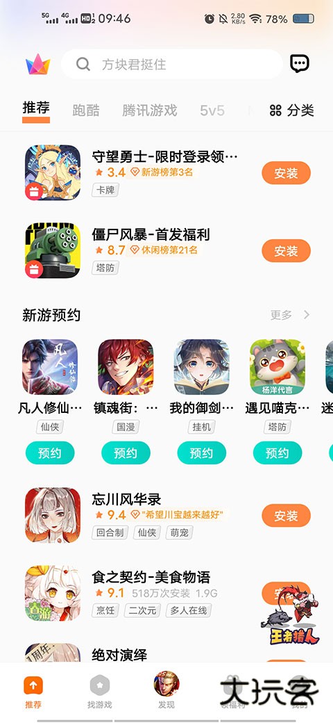 1、在游戏中心的首页,会有大量的新游推荐,以及在搜索框中输入自己想要玩的游戏。