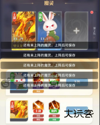 4.使用时打开小队上的布阵,将需要的角色以及魔灵放上即可。