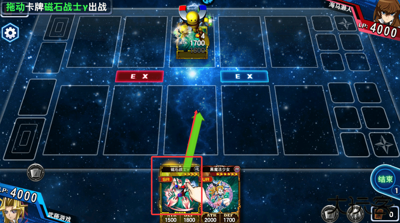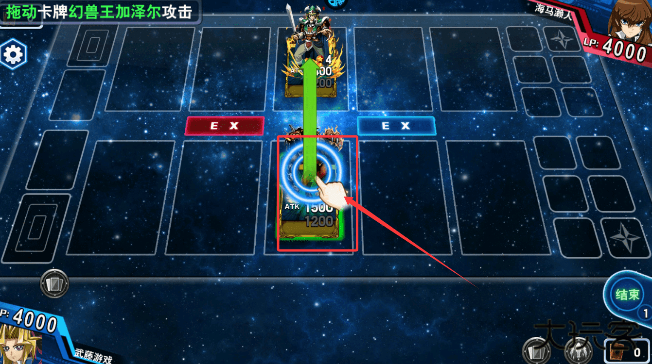 4、战场局势随时变化,需要根据手牌与场上情况灵活决策,是召唤新怪兽、发动攻击还是采取防御,屏幕下方的回合结束按钮用于确认本回合操作,将战局推进至对手回合。