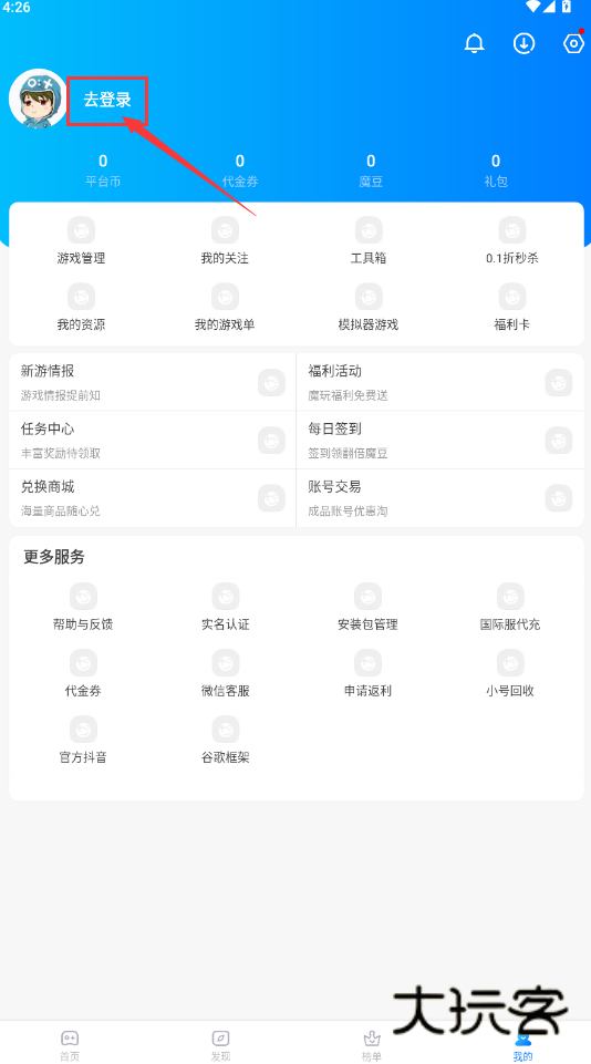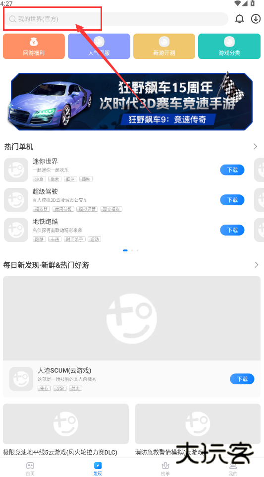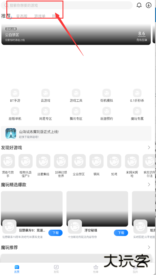 2.接着,在“发现”页浏览与搜索游戏。