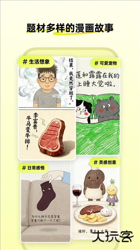 生活里的每个瞬间、事情和想象,你只需一张照片和一段描述,就能创作出一段精彩的漫画。