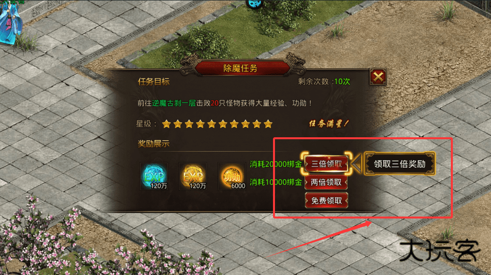 4、任务完成后回到提交界面,可根据自身资源选择免费或多倍领取丰厚奖励。