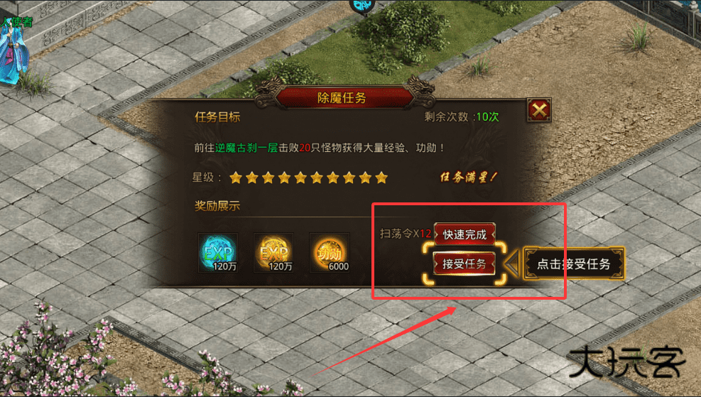 3、在活动或任务界面接取除魔任务,根据提示前往指定地图击败怪物就能完成。