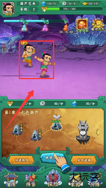 2、推进主线关卡过程中需合理搭配阵容,火娃的群体伤害与金刚娃的防御能力可形成互补,击败蛇精等经典反派能获取装备碎片与升级材料。