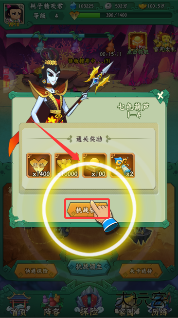 2、经验获取:游戏获取经验主要是探险关卡,1第一次通关关卡获得的经验都会很多,探险一个关卡成功后就可以放置在这个关卡里挂机获取经验,同时每天也有两次快速的探险获得挂机收益,前期可以一直打新的关卡获得最高的经验从而升级。直到无法攻打接下来的关卡就可以提升个人能力,攻打越后面的关卡挂机获得的经验越多哦。