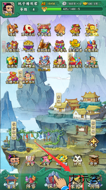 3、达到15级后开启农场种植系统,在爷爷的茅屋旁培育银币作物与潜能宝石,收获的资源可用于角色突破与装备强化,显著提升队伍整体战力。