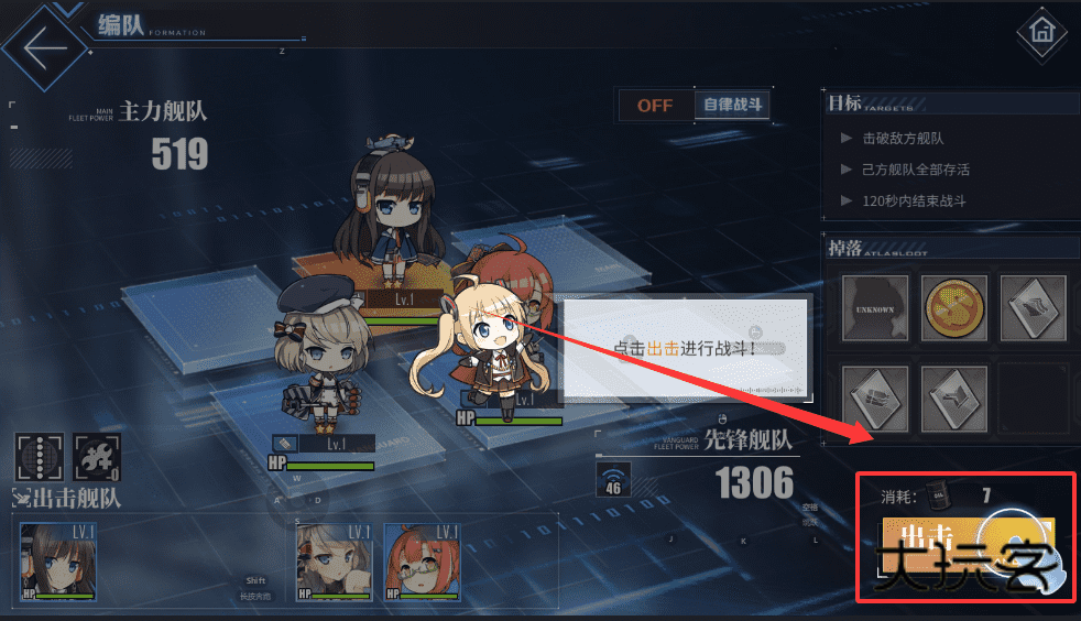 3、可以设置自律战斗自动作战,但要注意达成目标条件,比如全部存活或限时胜利,这样才能拿到额外掉落呢。