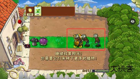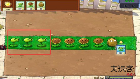 2、在植物卡槽中选择合适的植物,向日葵用于产生阳光,豌豆射手负责攻击。