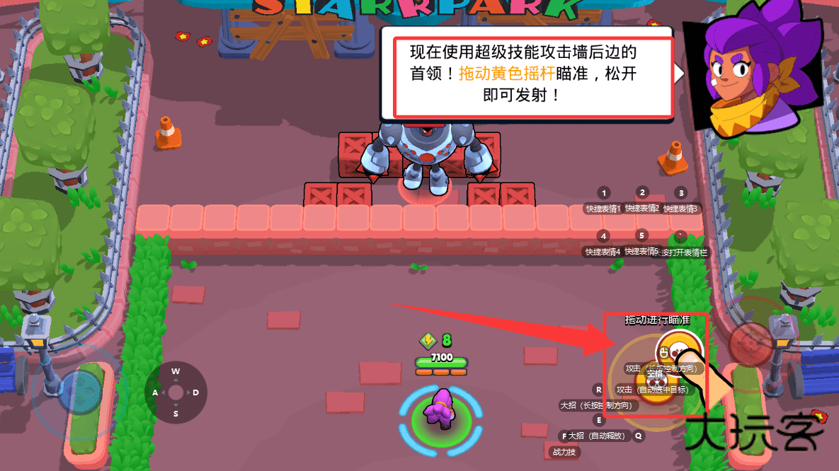 4、最终面对隐藏的首领时,拖动黄色摇杆蓄力瞄准其所在位置,把握时机释放超级技能穿透障碍,利用实时观察功能调整策略,完成对高难度目标的精准打击。
