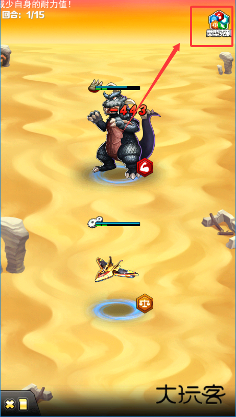 4、战斗不是无脑点技能,要看第四张图那样的战斗界面。注意属性克制关系,用克制的技能打伤害更高。同时要观察敌我血量和回合数,在合适的时机释放关键技能能改变战局。