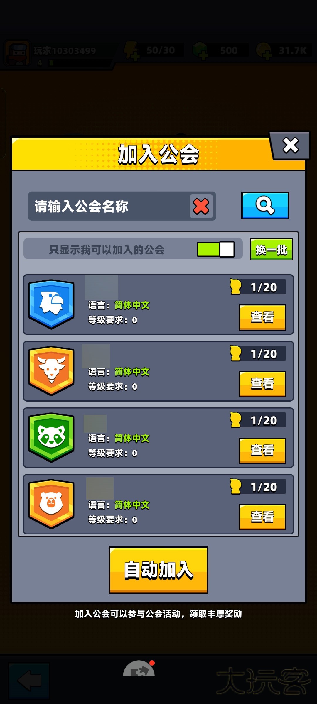 大家可以选择加入或者是创建公会。