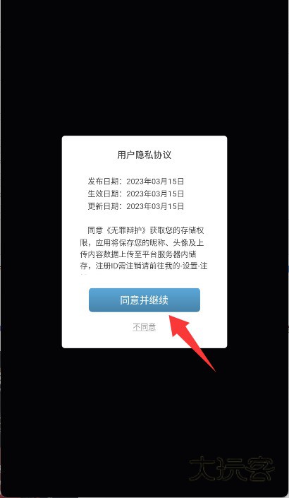 1、打开应用后,仔细阅读并点击“同意”勾选隐私政策,完成初始授权设置。