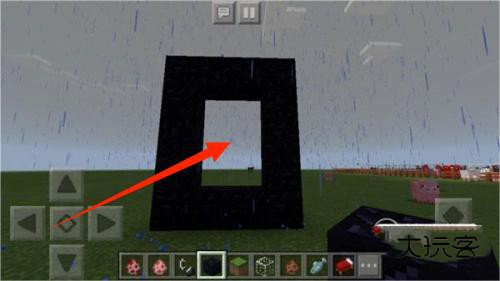 1、首先寻一片开阔区域,使用黑曜石搭建一个四格宽、五格高的门框,中间留出两格乘三格的通行空间。