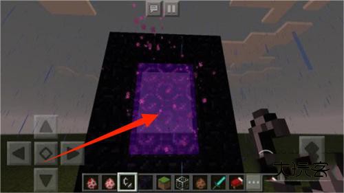 3、激活后,门框内部将浮现出一层闪烁的紫色透明薄膜,表明传送门已构建完毕。