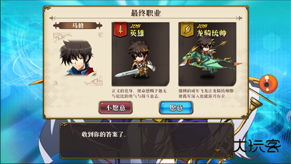 职业由女神问答的结果决定,女神会问大家一系列问题,通过你的回答,女神会为你选择适合你的职业,主角的最终职业有4种不同结果,听从命运的安排吧