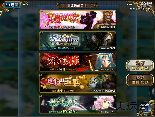 ⑤ 装备:装备不止能影响英雄的战力,还可以提供各种BUFF加成和技能效果,每天挑战日常秘境副本――女神的试炼,可以获得大量装备。