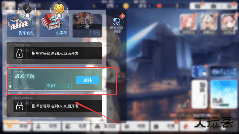 3、你需要不断提升指挥官的等级来解锁更多的房间和设施,比如战术学院,这样就能让更多舰娘同时接受训练,快速提升技能等级了。
