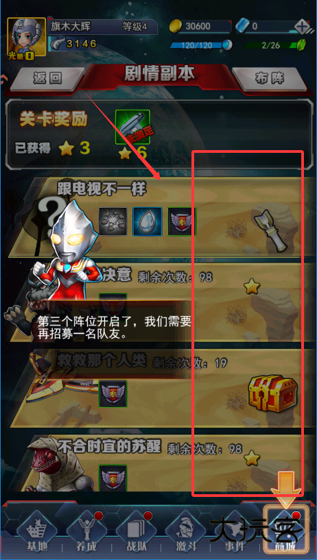 1、新手跟着引导做“剧情”任务最稳妥,这是升级最快的方法。等级提高后,像“在线奖励”“商城”这些功能都会陆续开放,体力上限也会增加,能让你玩更多内容。