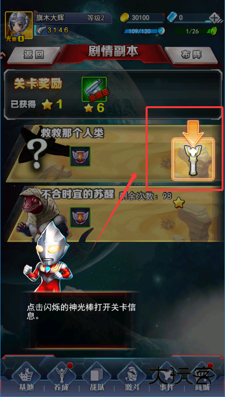 2、想让角色变强就去“养成”系统,那里可以给奥特曼升级、穿装备。装备栏有很多,初期可能有些是锁着的,升级后会慢慢解锁。有“一键强化”功能可以快速提升装备等级。