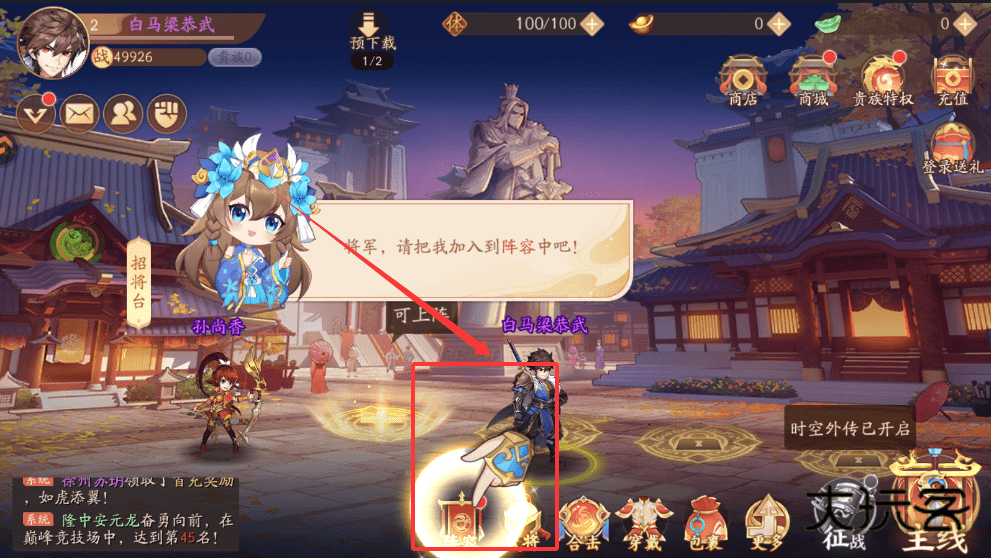 2、选中后会显示属性和缘分信息,如果提示“可上阵”,就说明该武将可以加入阵容,点击确认就能让他加入队伍了。