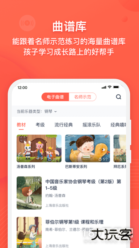 包括孩子们在学习钢琴时最常用到的曲谱教材以及各大学院的考级教材曲目均有收录,不仅能够满足孩子的日常练琴需求,还可以让孩子随时练习考级曲谱,提高考级通过率