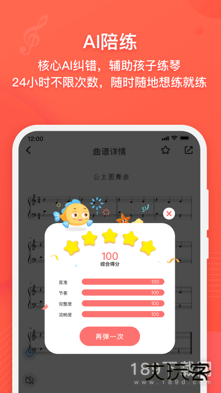 丰富的电子曲谱库,满足琴童所需;名师名琴,演奏标准化示范视频;各种辅助按钮,真正实现哪里不会点哪里;ai实时纠查技术,让妈妈再也不用担心孩子练错了。