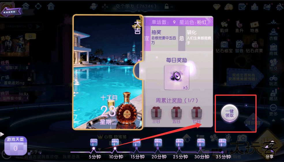 4、还有“周累计奖励”分三日,五日和七日连续领取,多参与“雪球”“衣橱”或“钻石宾果”等小玩法,也能额外获得精美物品,记得定时查看哦。