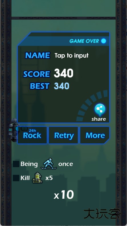 外星人入侵我们的地球,城市正处于危险之中,现在,你将成为一个超人,你需要从地面上沿着高楼的边沿一直往上跑,