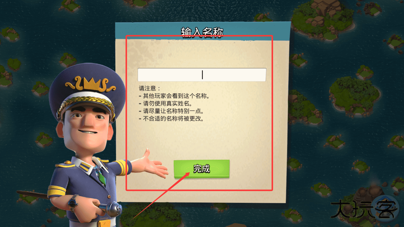 1、完成游戏协议的阅读与同意后,下一步是创建指挥官身份。在名称输入界面,需遵循提示设定一个得体的虚拟名称,该名称将在全服可见,用于识别你的基地与部队。
