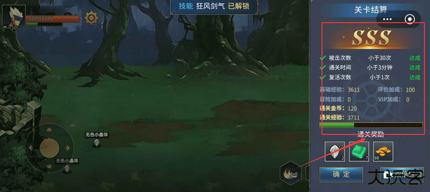 2、记得领取“通关奖励”,并可酌情使用“双倍经验”道具来加速升级。同时关注通关获得的金币与经验值,为后续成长做准备。