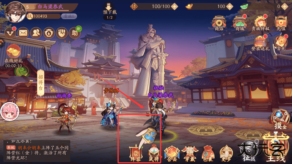 4、合理搭配阵容上阵同阵营武将,比如五个同阵营红将,可以激活强大的阵营光环,整体提升队伍战力。