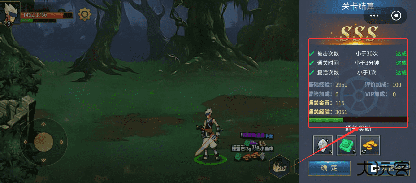 4、通关时间等数据,达成目标有额外奖励,结算界面会清晰显示通关金币与经验,别忘了领取“双倍经验”等加成奖励哦。