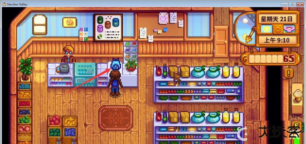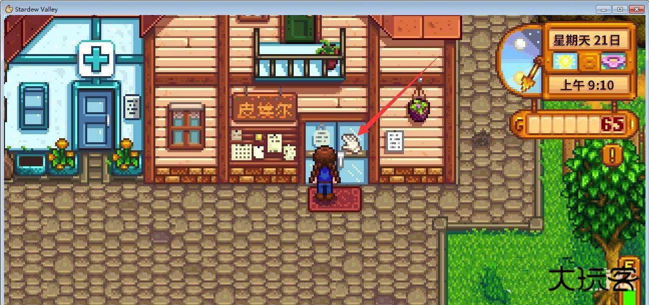 2、进入游戏后沿着小路往右走,找到红屋顶的皮埃尔杂货店,靠近门口会自动进入。