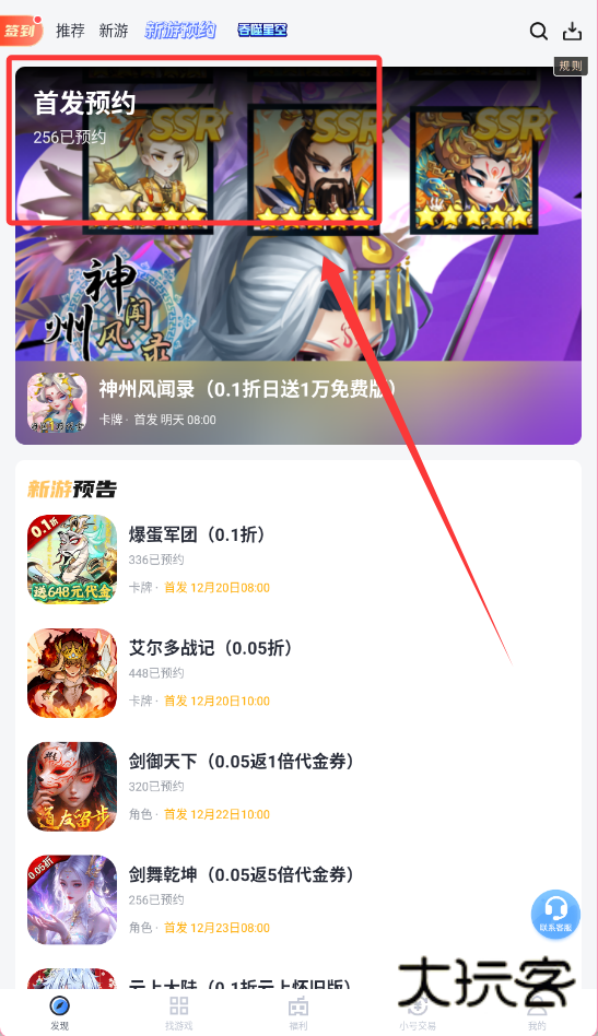 1、首先,在推荐或新游预告板块查看热门游戏,能帮你快速锁定高性价比新游哦。