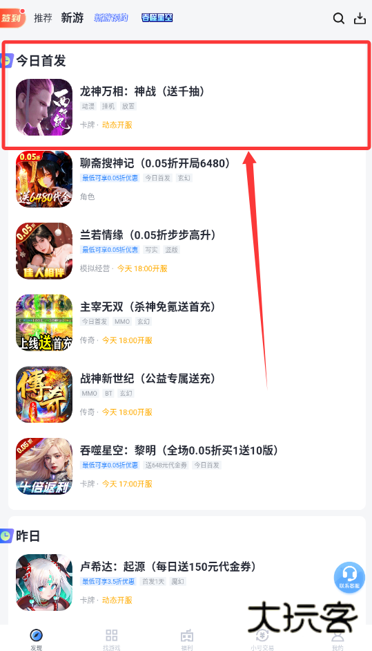 2、接着,留意每个游戏下方的类型与状态标注,比如动态开服表示开服时间以游戏内为准,而今日首发则代表当天可立即进入,适合想第一时间体验的玩家呢。