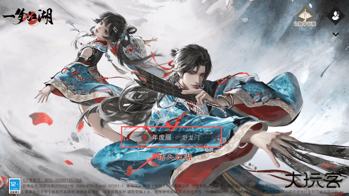 3、如果你想进入年度服,例如卧龙门,在主界面切换至平行服选项后,找到年度服栏目点击进入,再点踏入江湖按钮便能成功。