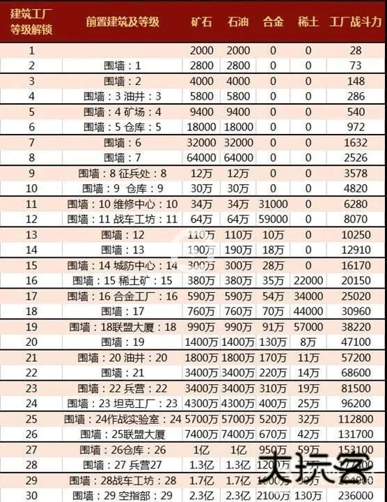最核心玩法就是建筑工厂等级,堡垒等级决定了你的兵营等级上限,兵营等级上限又决定了你的兵种等级,高级兵对低级兵的压制力是绝对强大的!