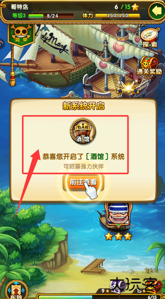 3、当达到特定等级或完成关键任务后,会触发新功能的开启提示。例如满足条件后解锁“酒馆”系统,该系统通常用于招募新的强力伙伴来扩充队伍阵容。