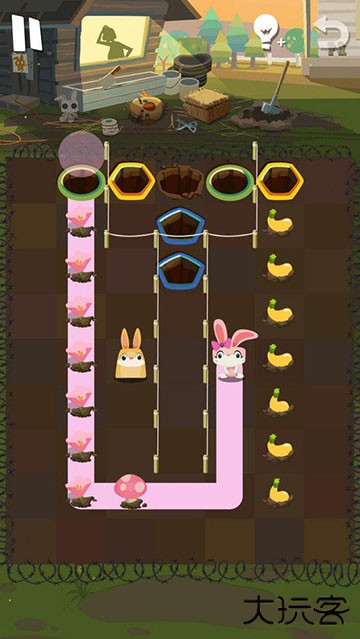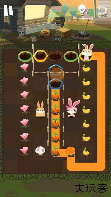 2、当萝卜被清掉后,障碍消失,操控胖兔子 Otto 去吃掉地图上的所有卷心菜,然后它也就能安全进洞了。