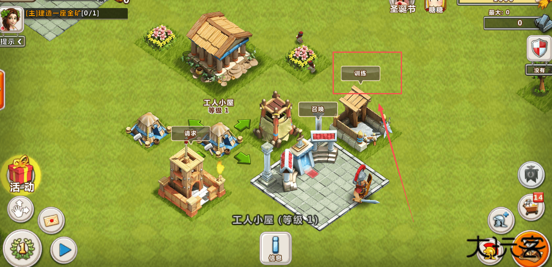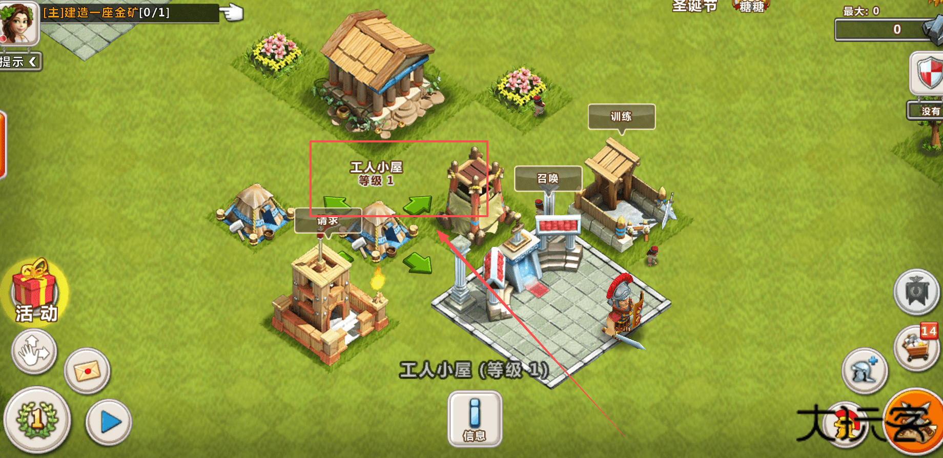 1、首先在主界面找到工人小屋,点击进入后能看到当前等级与建造任务。