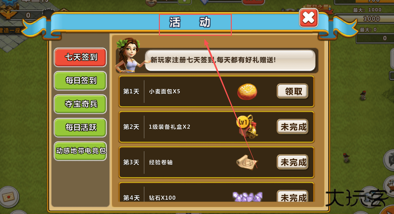 3、新人一定要关注活动板块,特别是“七天签到”和“每日活跃”任务。