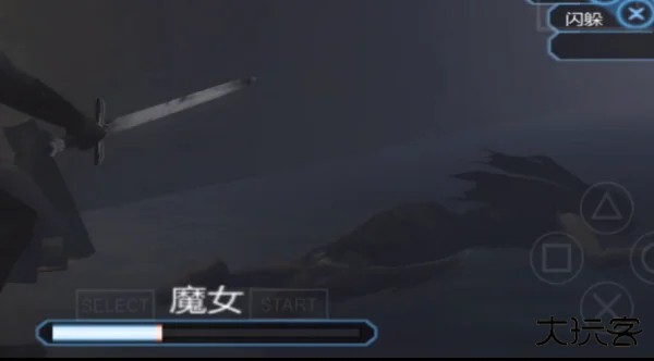 6、重复上面的步骤(等她攻击格挡住然后反击打倒她),坚持用这个方法持续消耗,把魔女的那条白色血条彻底打空,清空之后游戏就会自动播放一段交代剧情的 CG 动画了;